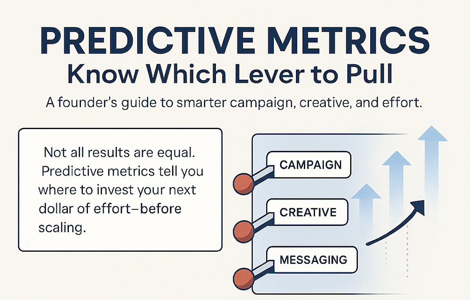 Predictive metrics transform pipeline into consistent, data-driven expansion by surfacing early signals of change in your sales and marketing pipeline, weeks before lagging data such as revenue drops. Top performing founders and investors use these insights to fight again slowdowns, tighten budgets, and help teams regain control where it matters.